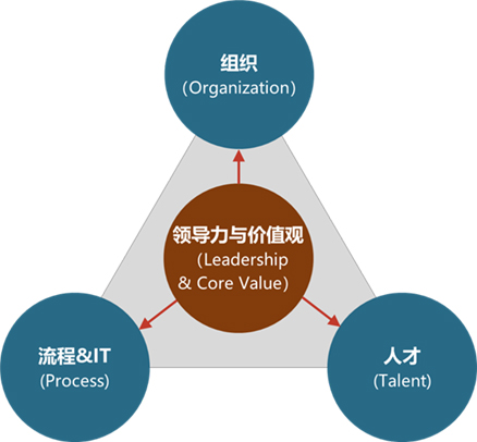 L-TOP模型:对于“组织能力锻造法”,我们将其归纳总结为L-TOP模型:领导力+人才+组织+流程,如下图所示: